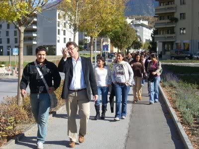 Mr. Gutzwiller and Raul lead the Panamainian group from Lunch at Muller to School