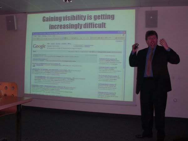 After a brief reception of coffee and croissants, Dr. O'Connor gave a dynamic and insightful presentation about the challenges of the changing culture of the Internet, and how it is and was used by hotels for marketing.